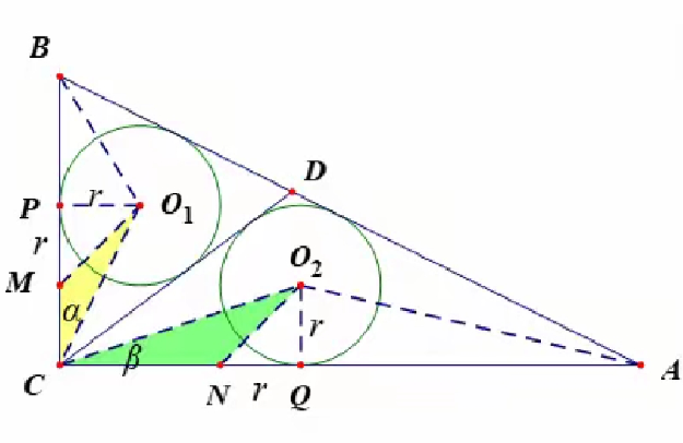 【点评】 本题关键在于利用内切圆面积相等转化为半径相等,结合相似三角形和三角函数求值。