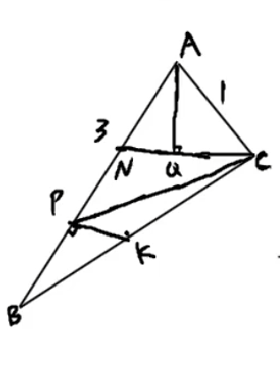当且仅当 cos2α4sin2α=sin2αcos2α\frac{\cos^2 \alpha}{4\sin^2 \alpha} = \frac{\sin^2 \alpha}{\cos^2 \alpha},即 tanα=22\tan \alpha = \frac{\sqrt{2}}{2} 时,AB+AC+AP|\overrightarrow{AB} + \overrightarrow{AC} + \overrightarrow{AP}| 取得最小值 72\frac{7}{2}