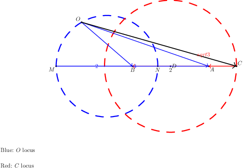 \thereforeCC 的轨迹是以 DD 为圆心,3\sqrt{3} 为半径的圆。